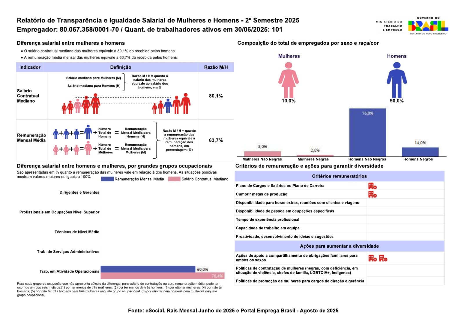 In compliance with Decree No. 11,795, of November 2023, and Law No. 14,611, of July 3, 2023, Macodesc publishes the report on transparency and salary equality for women and men for the second half of 2025.